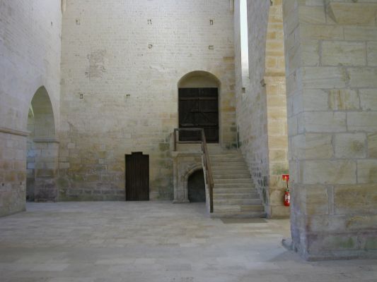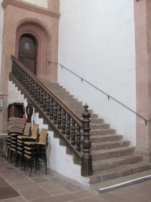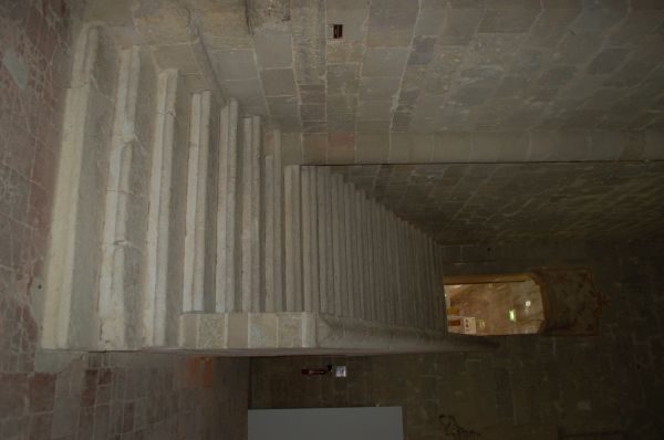 Z dormitáře vedlo dvojí schodiště. První, tzv. noční, směřovalo do chóru kostela a zkracovalo cestu na noční bohoslužby. Druhé schodiště nazývané denní spojovalo dormitář s východním křídlem ambitu. Vzhledem k tomu, že klášterní život nekončil se setměním, osvětlovaly schodiště i přilehlý ambit lampičky, jež byly umístěny například ve výklencích zdiva. I v dormitáři samém měla být v noci stále rozsvícena lampa, která byť prostor zcela neprosvětlovala, alespoň usnadňovala pohyb.